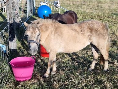 Pearl is a mini x Welsh pony. She has just arrived this January with bad itch. When she is feeling better, we hope that she will work with some of our younger clients.