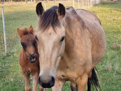 *BR Moonlight is Starlight's son. Born July 2025, his father is a Welsh Riding (B) Pony. Moonlight is just learning to be lead, pick up his feet (and not to bite).