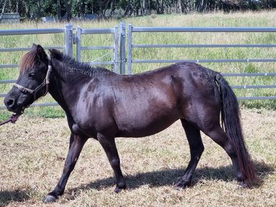 Summer is a miniture pony. She came with Pearl. She also has with bad itch. Summer has already started working with a young client.